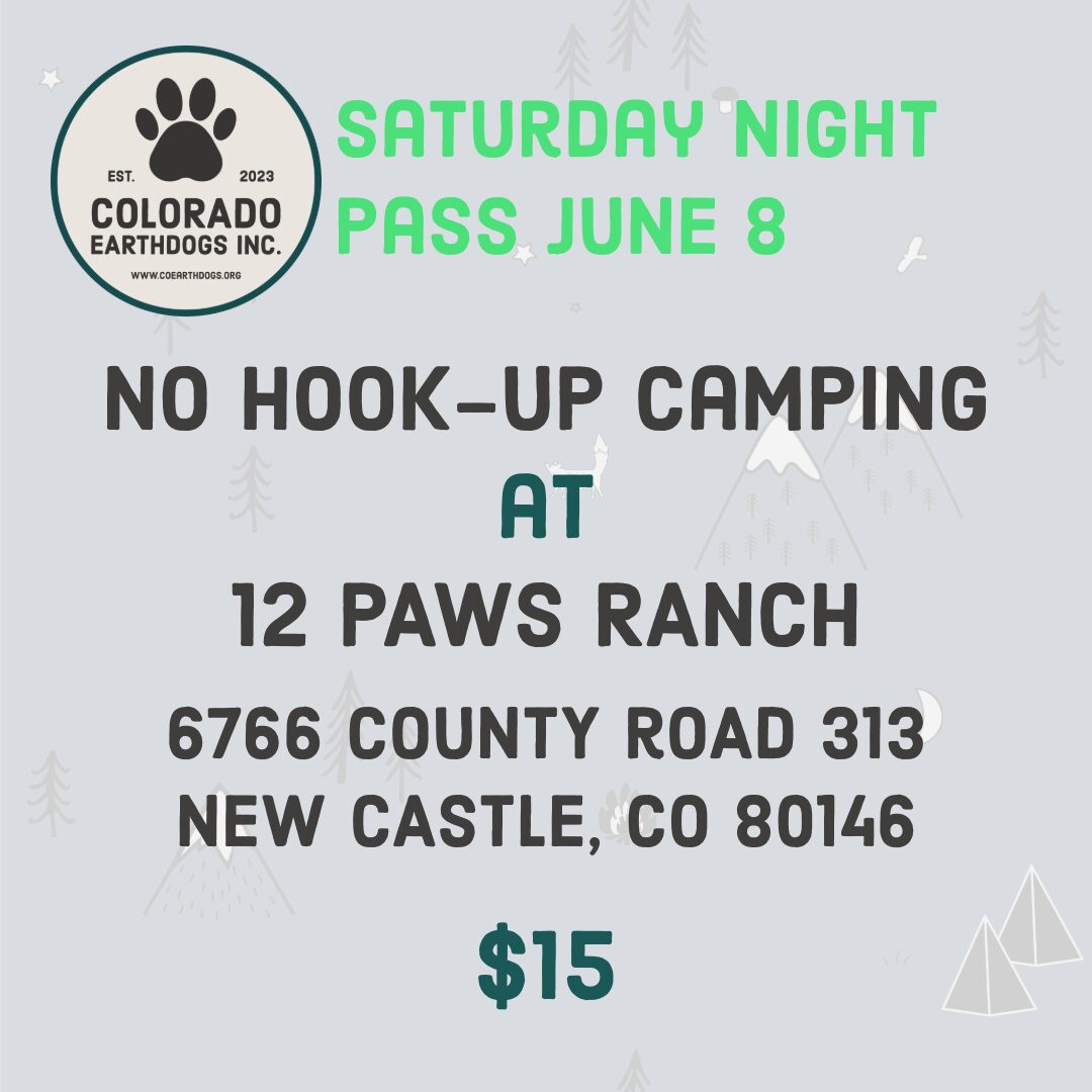- 7:00 to 8:30 am – 12 PAWS RANCH is open for camper arrivals. Questions or issues, please text Kelley at (970) 456-9953 before Friday. There is no cell service at 12 PAWS RANCH.